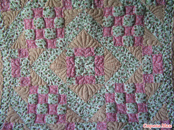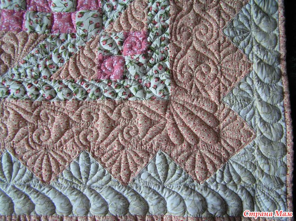 Ну и как всегда, когда уже сшит лоскутный верх, и доходит дело до стежки, то начинаются поиски подходящих вариантов стежки. Ведь стежка - это самое главное, и то, что может великолепно подчеркнуть лоскутный рисунок и сделать работу очень красивой.