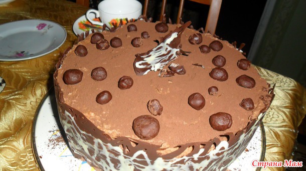 Кроме того воспаленный мозХ в 3 часа ночи не смог приказать рукам отлить шоколадные красивые капельки. и я из остатков шоколада изобразила - хм, ну это сильно сказано- изобразила...- а-ля ганаш и этими "шариками" украсила торт. В середке тоже поместился кусочек шоколенты. Ну не выбрасывать же.