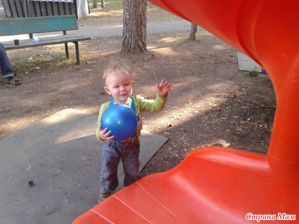 Когда рассказываю ему стихи Агнии Барто, он так внимательно слушает, и тоже вставляет те слова, которые он может сказать - мя (мяч), ду (упаду) итд.
