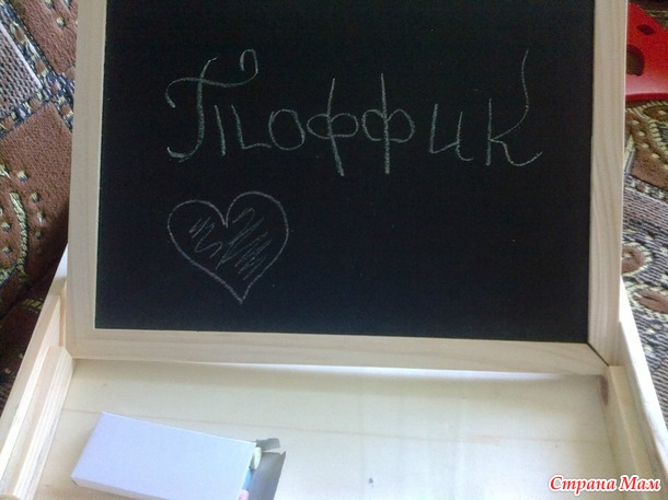 А вообще прикольная! В комплекте 3 цветных мелка, двухсторонняя стерка, фломастер, книжка с идеями и много-много всяко-разых магнитиков. Я сама с удовольствием повозилась с такой игрушкой)))