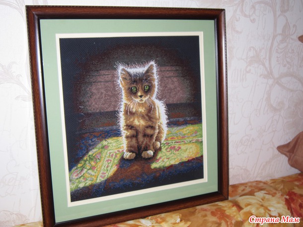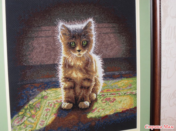 Вышился такой котенок. Когда увидела набор влюбилась) Фирма Dimensions. Черная канва. Вышивалось легко, хотя на черной вышивала впервые ни каких неудобств не доставила. Сам котенок крестом, а весь фон полукрестом. Много бэка, но я всегда боюсь начинать (скорее просто лень))), а вышиваю быстро и без проблем)