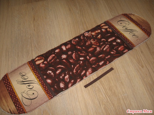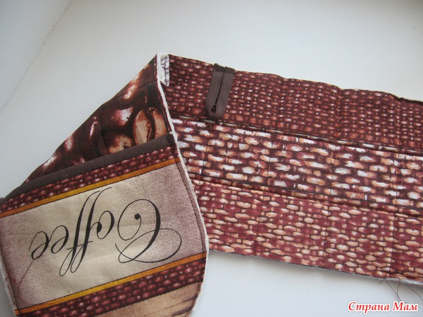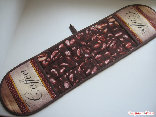 Длина такой прихватки- от 60 до 80 см, ширина- 18-20 см.