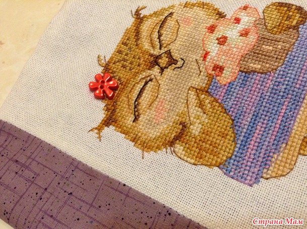 Вышивалась совушка очень быстро и легко, схема проработана чудесно. Делать фото процесса вышивки я не стала, так как вышила красоточку за два вечера. Размер вышивки 15х12см, нитки dmc, для платья использовала нитки dmc меланжевые (правильно вроде мультиколор называются). Использовала ткань для пэчворка: фиолетовую для лицевой части и джинсово-голубую для внутренней части. Шила обложку по МК (их в инете очень много).