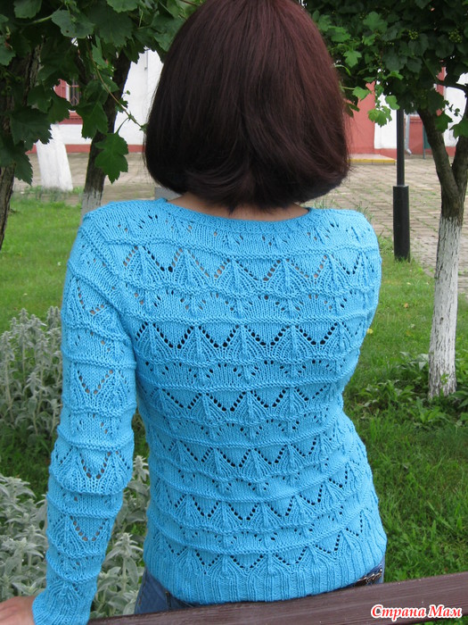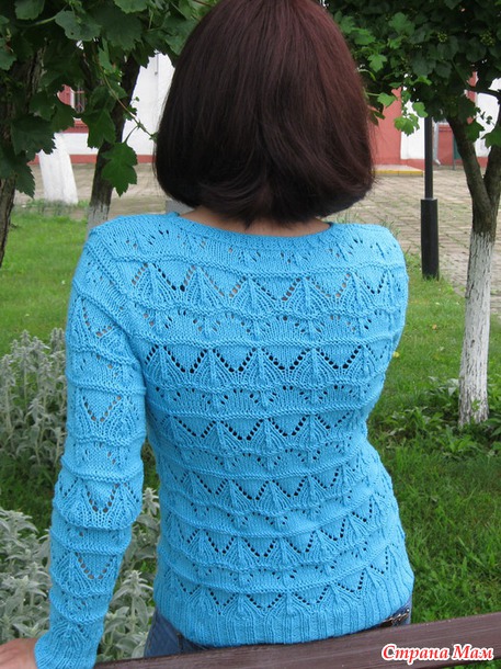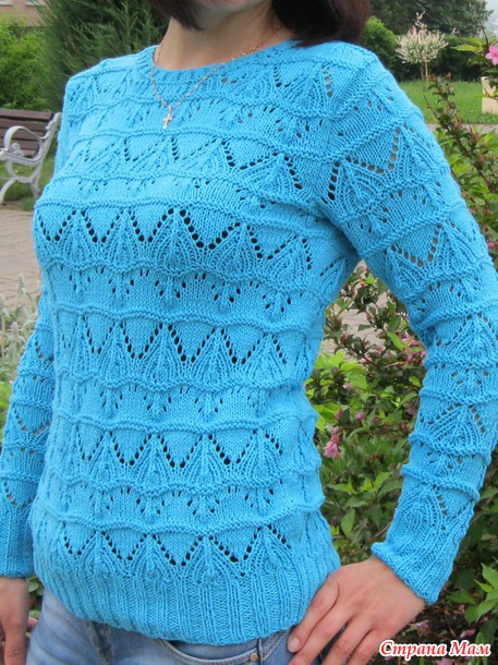 Бирюзовый ажурный пуловер