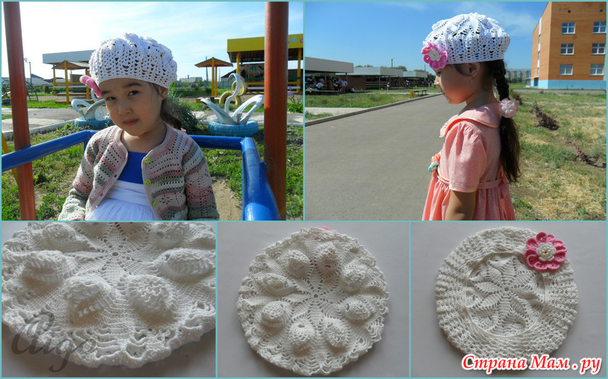 Берет, вязала по описанию салфетки, ананасики получились выпуклыми