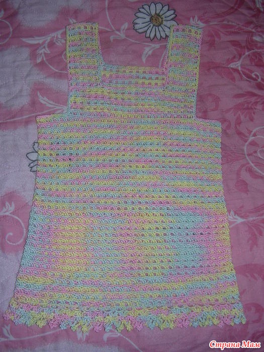 Давно хотела связать что-нибудь именно такой расцветки. Получилась маечка для дочи. Ниточки Виолетт от ЯрнАрт, понадобилось 1,5 моточка, крючок №2. На девочку 6 лет.
