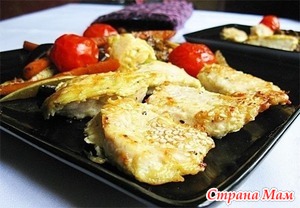 На гарнир у меня овощи. Конечно, состав каждый раз разный. Сегодня это - кабачки, баклажаны, сладкий перец, морковь и помидоры. Приятного аппетита!"