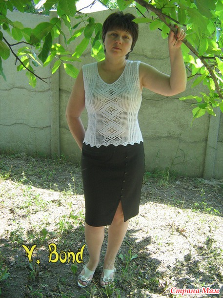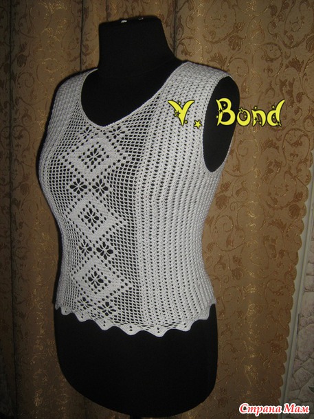 Топ с элементами филейного вязания. Моя работа.