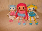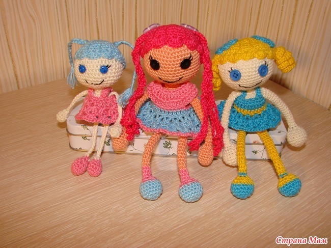 Заразилась я этими куколками у Ольги http://nolik-flytoyourheart.blogspot.ru/. И навязала для подарков знакомым девчушкам. Вязала пряжей СОСО, крючок кловер 1,5. Размер куколок сидя от 7 до8,5 см. У большиньких можжевеловые бусины в ручках и ножках. Розоволосой можно заплетать косички и одежда у нее съемная.