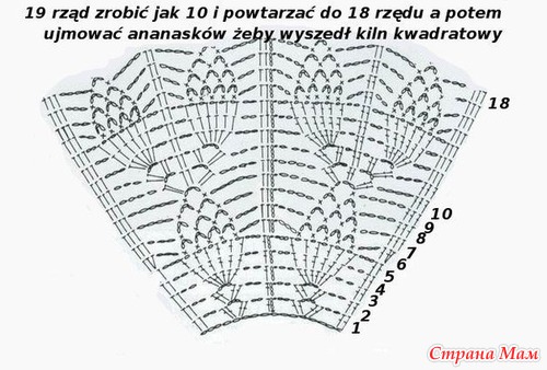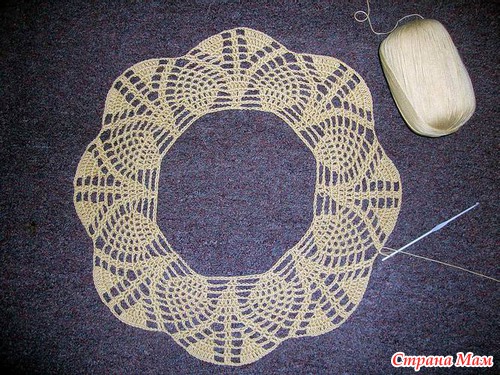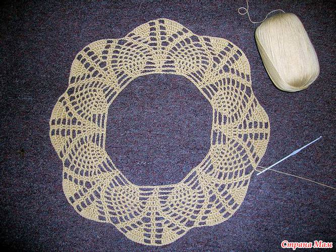 Там при вязании 3 ряда ананасов ужасно фалдит. Я пробовала уменьшить количество арок на ананасе, с 8 до 7, но не помогло.
