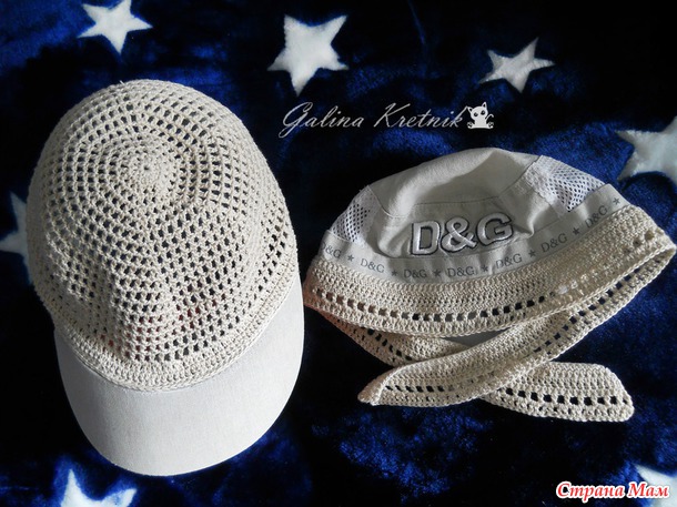 Козырёк взяла готовый, от старой бейсболки и пристрочила к вязаной болванке)))