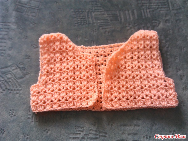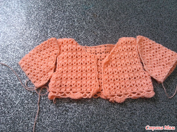 я не высчитываю, не выкраиваю и не рисую, мне так неудобно, тем более модель рядом скачет. Вяжу цепочку из воздушных петель, примеряю, чтобы попасть в размер, далее начинаем вязать прямо, здесь. в модельке, рукав идет короткий и далее обвязка, тут уже смотрите кому как нравится. Связав определенную высоту, начинаем делать скос путем убавления петель. Важный момент, смотрите, чтобы ваш скос вписался в пройму. Получается примерно так