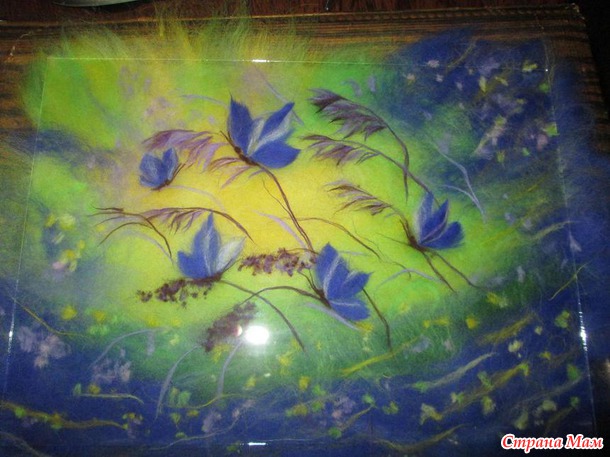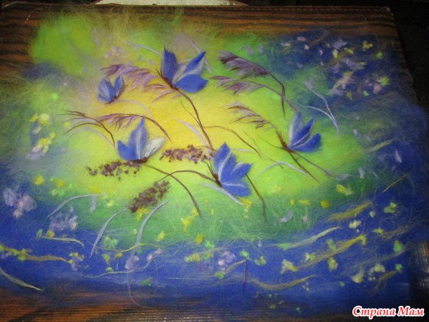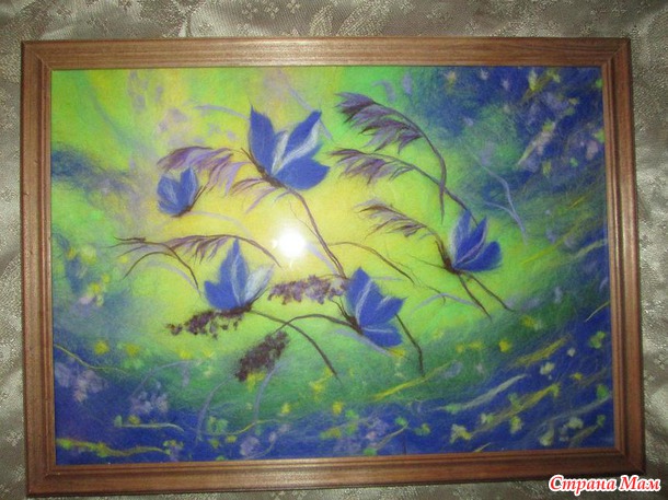 Отлично получилось!!Воздушно и нежно! Веточки коричневые ( на которых сидят бабочки) тоже из шерсти? Я пока только одну картину сделала и вот такие тоненькие у меня не получалось сделать.В чём секрет?