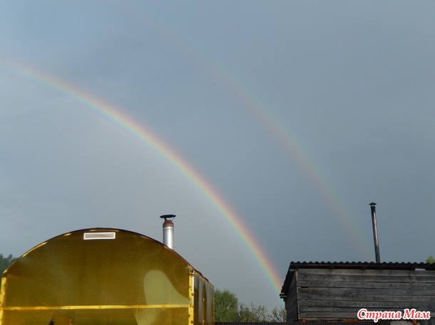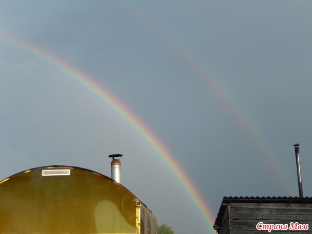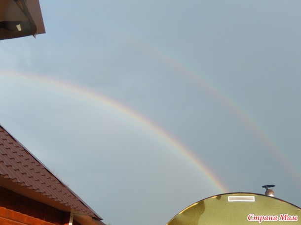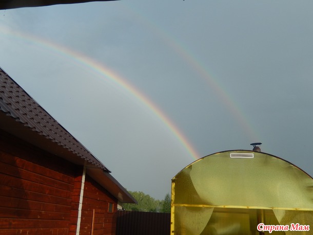 После ливня я первый раз увидела чтобы на небе было две радуги. Т. к. фотик всегда со мной то и фотографии тоже имеются. Это мы ездили в гости к друзьям 2 недели назад.