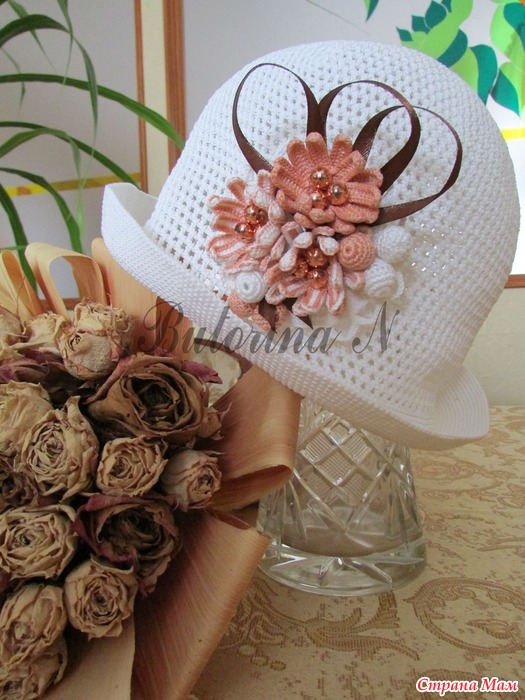 Идею шляпки присмотрела тут: http://woman7.ru/rukol/vasanie-sahpki/111-shlapka-kruchkom-leto-2011.html, а на украшения облизывалась здесь: https://www.stranamam.ru/post/7432715/