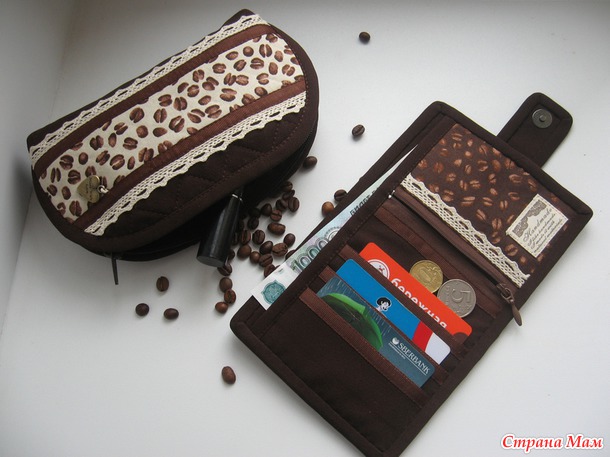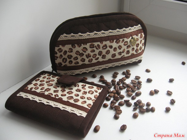 2. Кофейный комплектик (косметичка и кошелёк). Тоже шился в порыве вдохновения