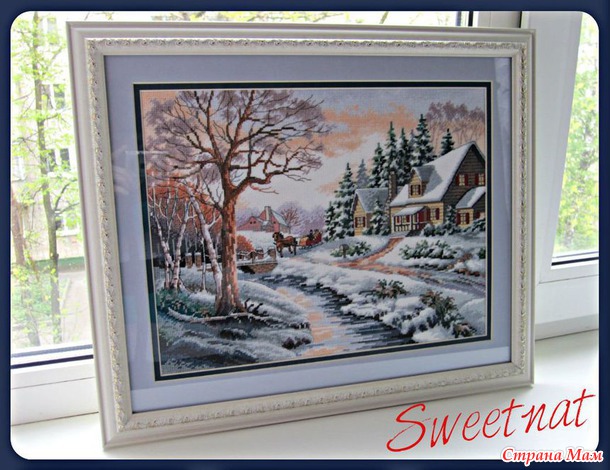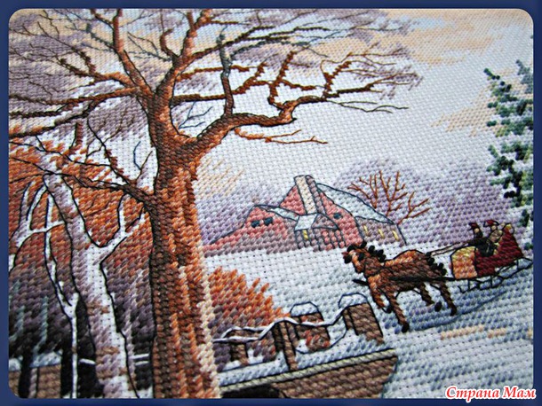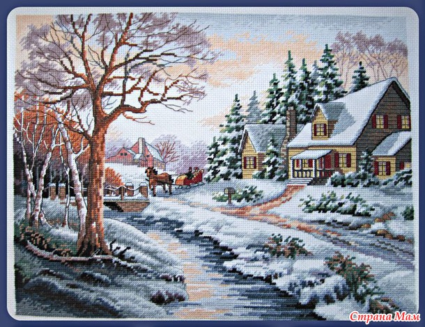 Недавно закончила очень полюбившийся мне дизайн от Дименшнс "Зимняя прогулка" (набор - оригинал). Вышивать картину было одно удовольствие! Плавные переходы цветов, отлично проработанные детали, вышивка в 1-6 нитей, крест, полукрест - от работы было просто не оторваться! Картина вышита на Аиде 14. Размер работы в оформленом виде 48 х 41 см.