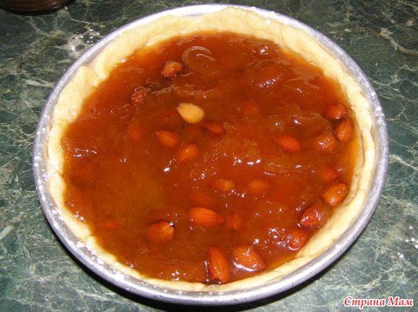 Потом я уложила на тесто абрикосовое варенье.