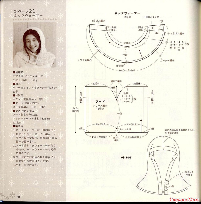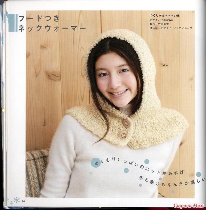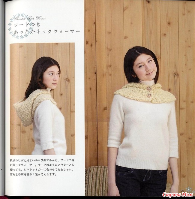 Нашла вот такой капюшон-воротник. Азиатская моделька, но все понятно и без перевода. Тут по весне девушка показывала подобные, а описание не дала, времени не было. Вот можно и самим теперь навязать таких, и рисунки разные сделать.