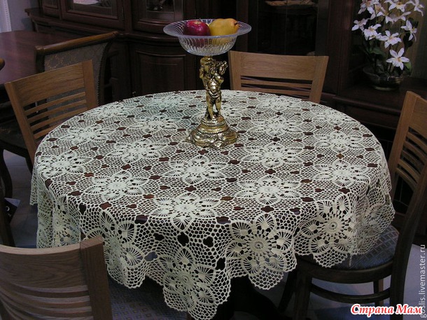 Скатерть мотивами в форме шестиугольника, подойдет на круглый, овальный и квадратный стол. размер в диаметре 150 см (по выступающим углам) сфотографирован на столе 90 см), цвет «шампань» мерсеризованный длинноволокнистый хлопок Выполню на заказ в нужном размере и цвете. Цена будет зависеть от размера.