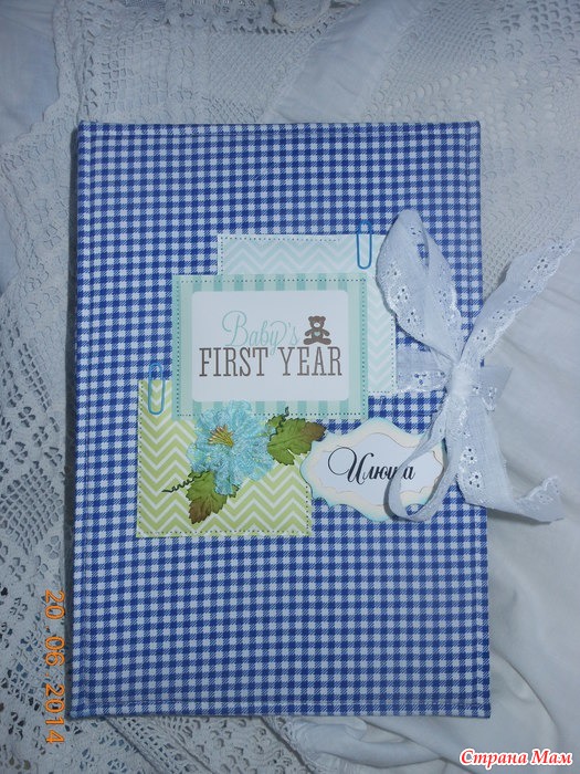 Всем приветик. Хочу показать вам моё новое творение... Фотоальбом для мальчика Илюши. Рассчитан альбомчик на 67 фото, форматом 10*15. Формат альбома 20*30 см, 9 разворотов (18 страниц)... на каждой страничке есть теги для записей. Есть место для хранения фото УЗИ и кармашки под бирочку, скрепку от пупочка, локон, свечку с тортика... Смотрим...