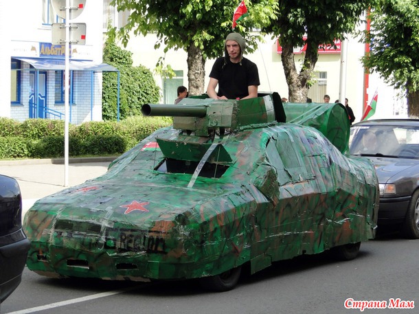 поэтому не только машины были в кортеже, но и вот такая импровизированная военная техника.