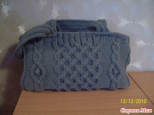 Замечательная сумочка а если еще и в комплектеке с шапочкой шарфиком и варежками вообще цены не будет. А вы не подскажите ав ее обвязывали или сами вязали. Тогда что делали что бы она форму держала ?