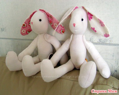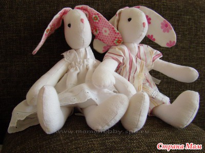 Нашли выкройку, переделали и вышла из пеленочки парочка фланелевых зайчат для дочек