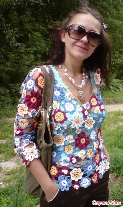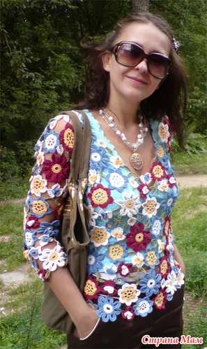 Истинное произведение искусства. Цветовое решение целиком зависит от вашей фантазии. Сказочный узор модели еще больше подчеркивает красоту загорелой кожи, а белоснежная хлопчатобумажная пряжа с добавлением вискозы идеально подходит для жарких дней и прохладных вечеров.