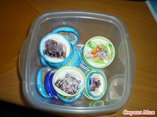 Где-то вычитала, про самодельные развивающие игрушки:-"Крышки от детского пюре