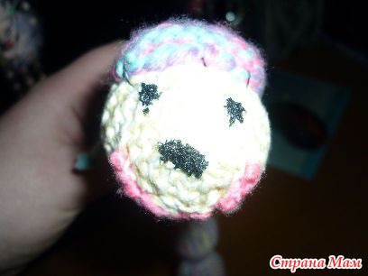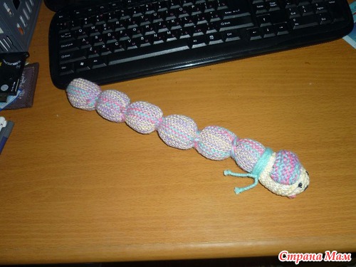 Вязала спицами "полотно" потом его сшивала, набивала, и перевязывала веревочками, деля на шарики... видела много вариантов в сети, но крючком, его я еще не освоила....