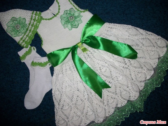 На ваш взгляд, сколько это может стоить??( по затратам: лента, гипюр- 2 м, пряжа- 4 моточка Пеликана, 1 моточек Детского хлопка, моточек Пехорки Ажурной, бусины, кружево и тп.). Комплект на рост 92/98