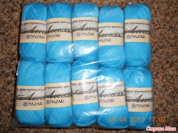 Ниточки Ассоль от Назар-рус, 500 м/50 грамм, хлопок 100%, крючок №1.