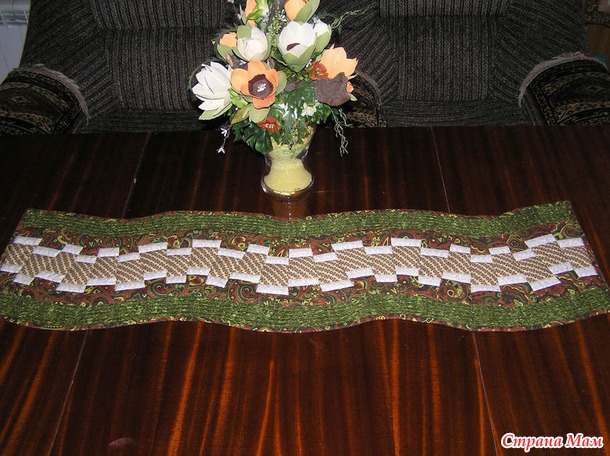 Лоскутные работы Улы все хороши, но уж очень мне понравилась дорожка на стол. Посмотрите, какая красота!