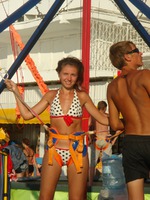Вот этим летом отдыхали в Анапе и на пляже стоял такой атракцион каждый день я слушала как там визжат, но все же очень хотелось попрыгать
