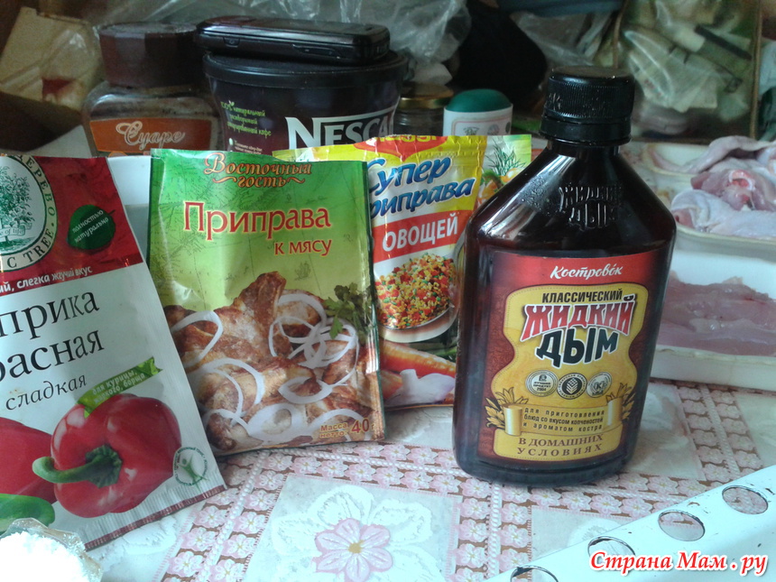 В нашем случае это кориандр молотый, перец черный молотый. Это необходимый минимум. Можно добавить паприку ( по желанию). Хорошо сочетается смесь прованских трав. Использовать ли приправы с глутаматом натрия? Это на ваше усмотрение - вопрос вашего вкуса и, я бы сказал, вероисповедания.