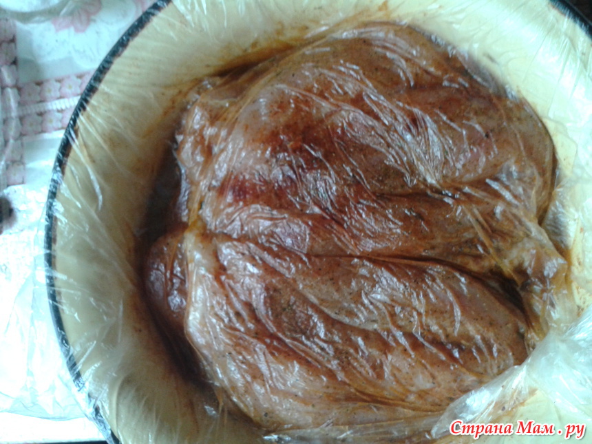 Через 3 суток вытаскиваем промаринованную грудку из холодильника.