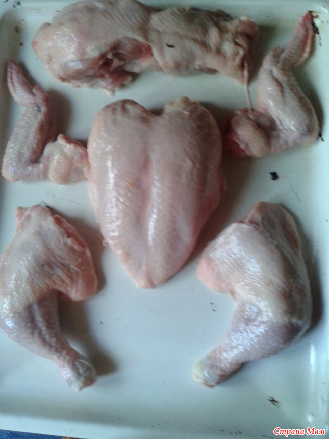 Не смотрите, как разделаны магазинные окорочка. Куска хребта на окорочке быть не должно.