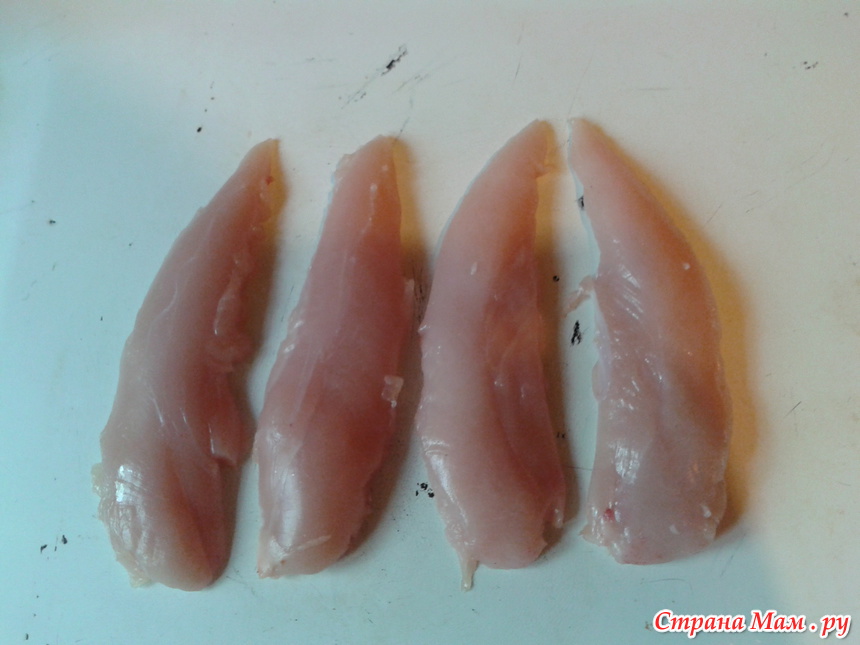 Из всего разнообразия полуфабрикатов, оставшихся после разделки 2 кур. Неиспользованными остались малые грудные мышцы, вырезанные с грудки при приготовления рулета. Если с рулетом возится не хочется - используйте всю грудку - не пожалеете.