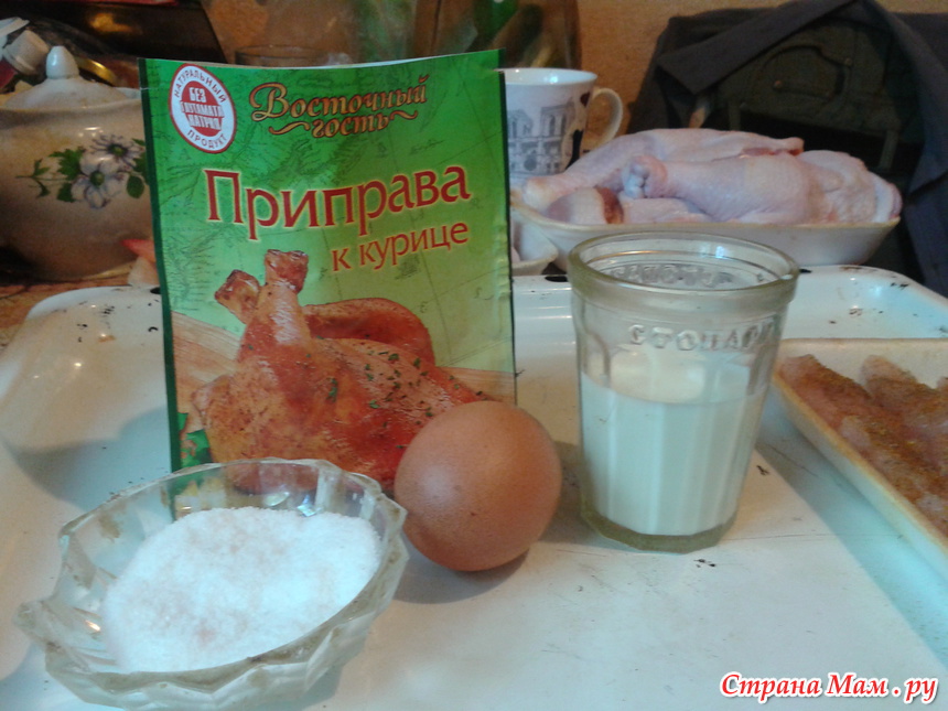 Кроме куриного филе для приготовления этого блюда нам потребуется 1 яйцо, 50 мл молока, соль и специи по вкусу.