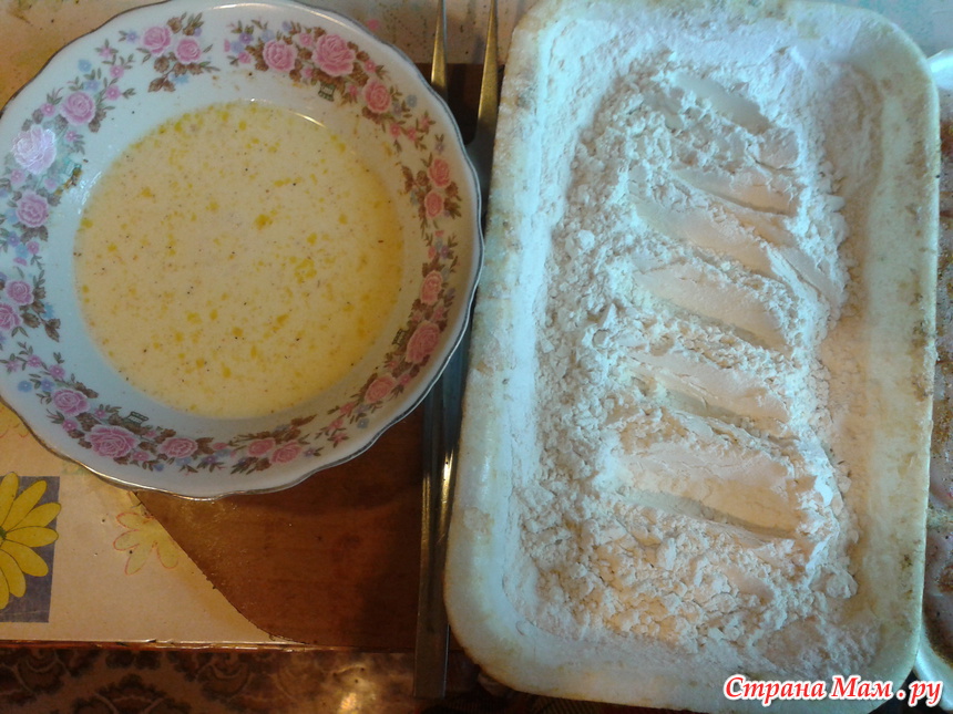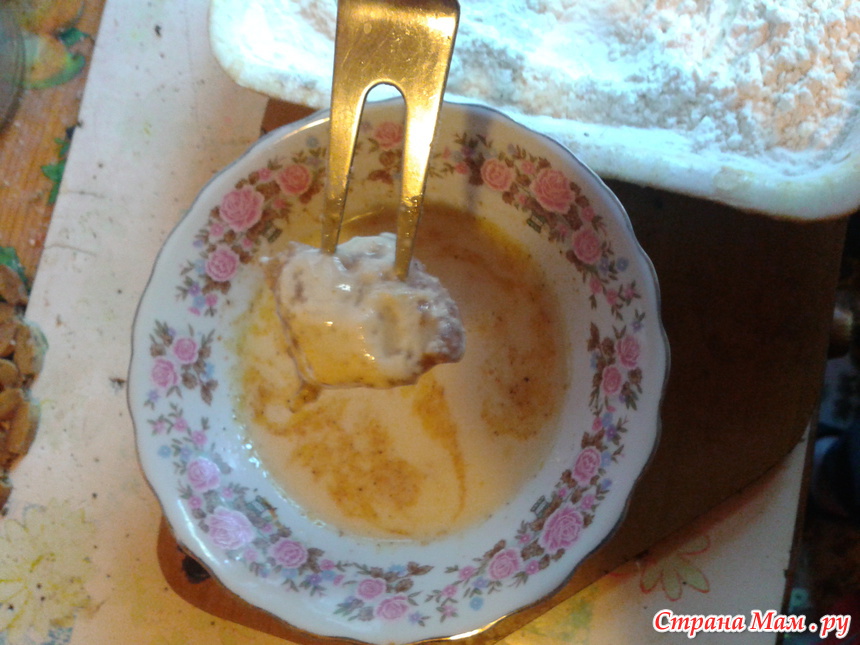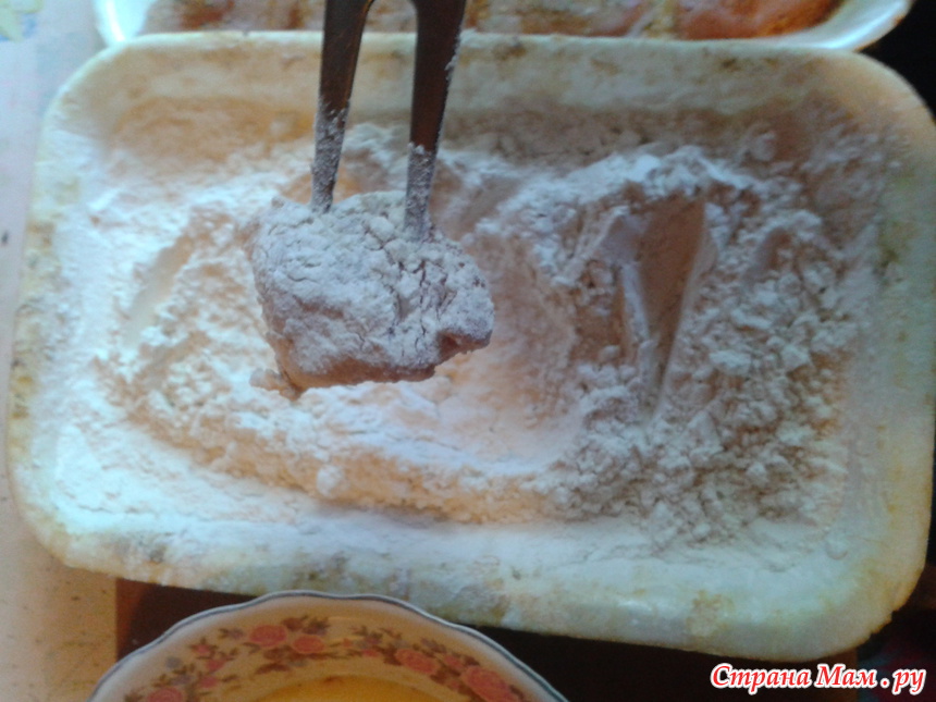 затем снова в муку и снова в яйцо.