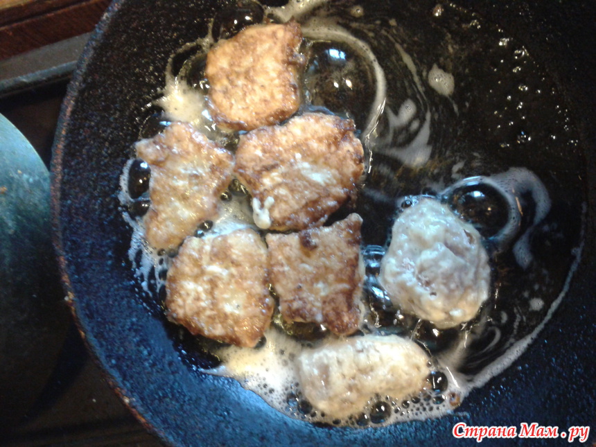 По мере готовности кусочки переворачиваем.