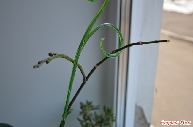 Первый распустился. У второго даже зародыш бутона засох. Я не стала обрезать. Недавно оба цветоноса снова стали выпускать бутоны. Спящий выбросил боковой побег, и на нем стали появляться бутоны. Недели 3 развивался хорошо и активно. А цветущий стал просто расти в длину и наращивать новые бутоны.