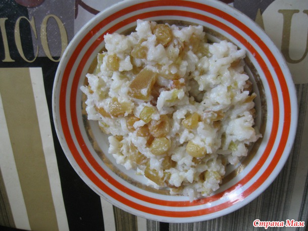 , знают что от кексов я обычно отказываюсь.Сегодняшняя кашка с карамелизироваными яблоком и изюмом. Про неё мне в Казахстане говорили, что она поминальная(впрочем как и блины) и в обычной жизни её не готовят. Но я решила что мы в России, ктому же сын готов её есть как минимум раз в неделю. Так что у нас она часто в меню присутствует сытная, в меру сладкая, с ягодами, фруктами, сухофруктами, цукатами и даже орешками.