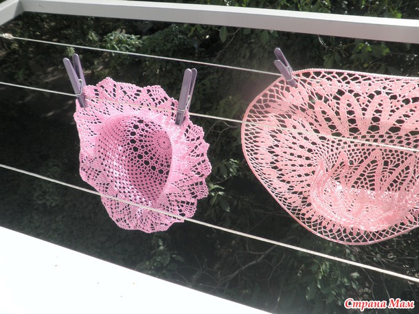 Клей сохнет быстро, полусухую шляпу можно досушить на верёвке. Если какая-то часть деформируется, её легко можно потом поправить горячим утюгом:
