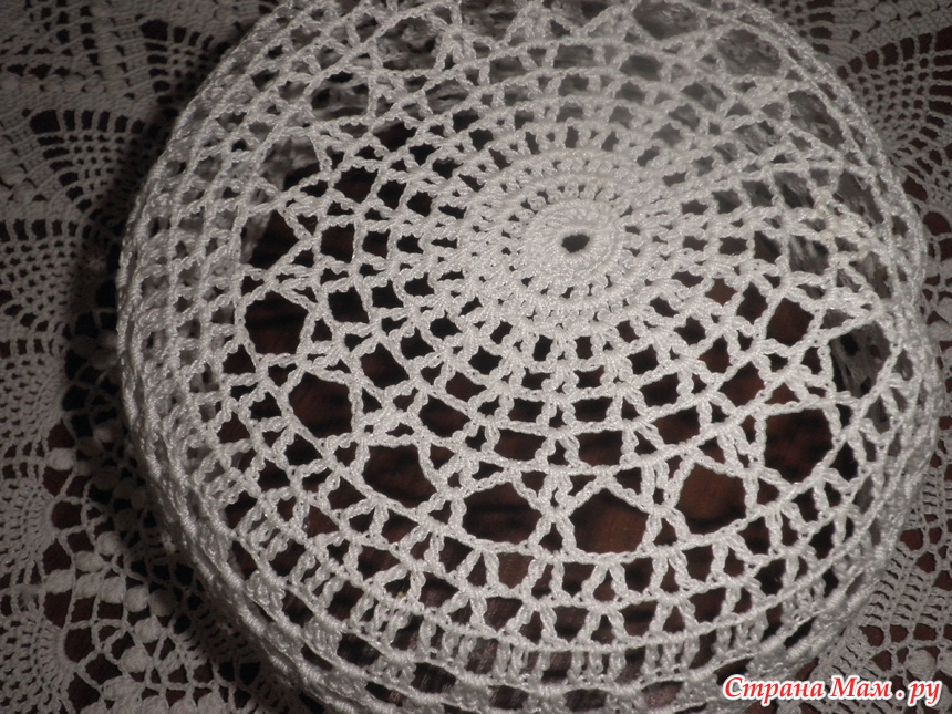 Для белой шляпы котелок надо вязать крючком большего размера; мне пришлось перевязывать, так как объём, связанный Кловером 1,5, оказался маленьким, для перевязывания я взяла «Кловер»1,75
