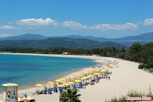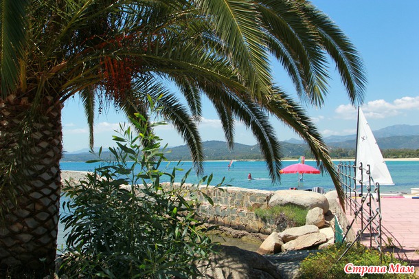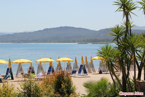 Теперь про море... вообще на Сардинии сильные ветра... но! отель и пляж отеля расположен в бухте, тем самым спрятавшись от всех возможных Мистралей!! а вот и сама бухта и наш пляж