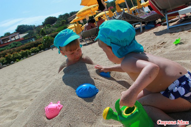 в конце отдыха мы все свои шедевры подарили аниматорам отеля, чему они были несказанно рады)). Песок на пляж белый и крупный, он может "лепится" не так хорошо, как мелкий, но зато маме на радость не застревает в купальниках. Малышам размер песка был не принципиален, им было важно его наличие))) мы в него и закапывались
