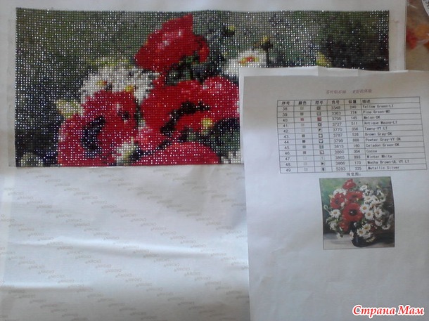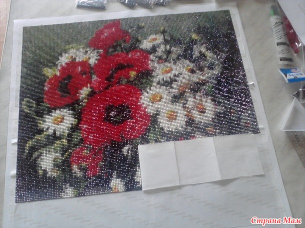 Готова первая работа, "Маки и ромашки", 40х40 см