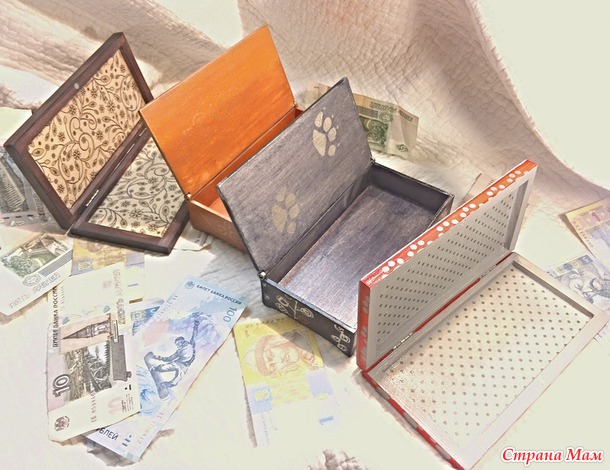 Те купюрницы, которые повыше - сборные, намучалась с ними, больше такие заготовки не буду брать, хотя туда можно мнооого денег напихать.